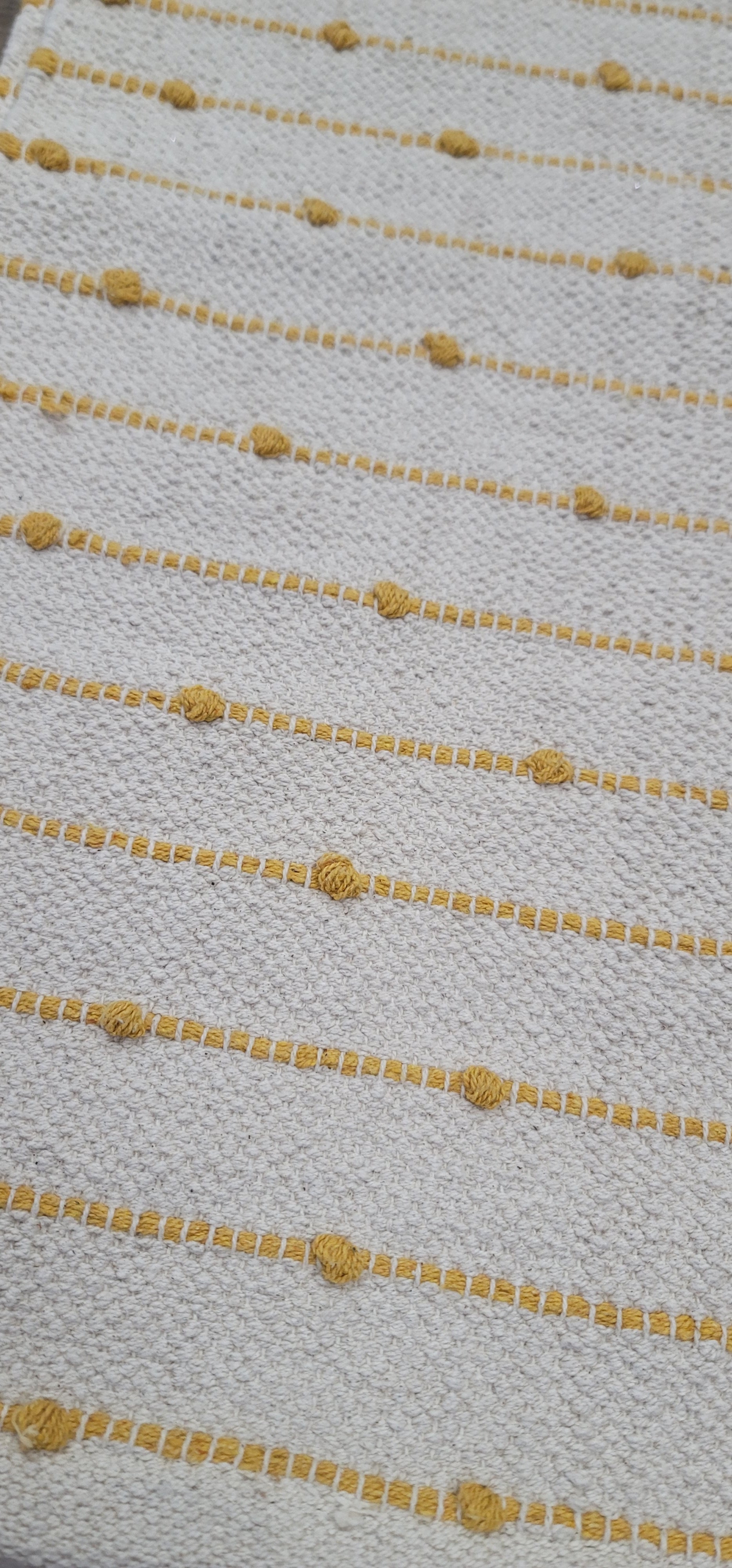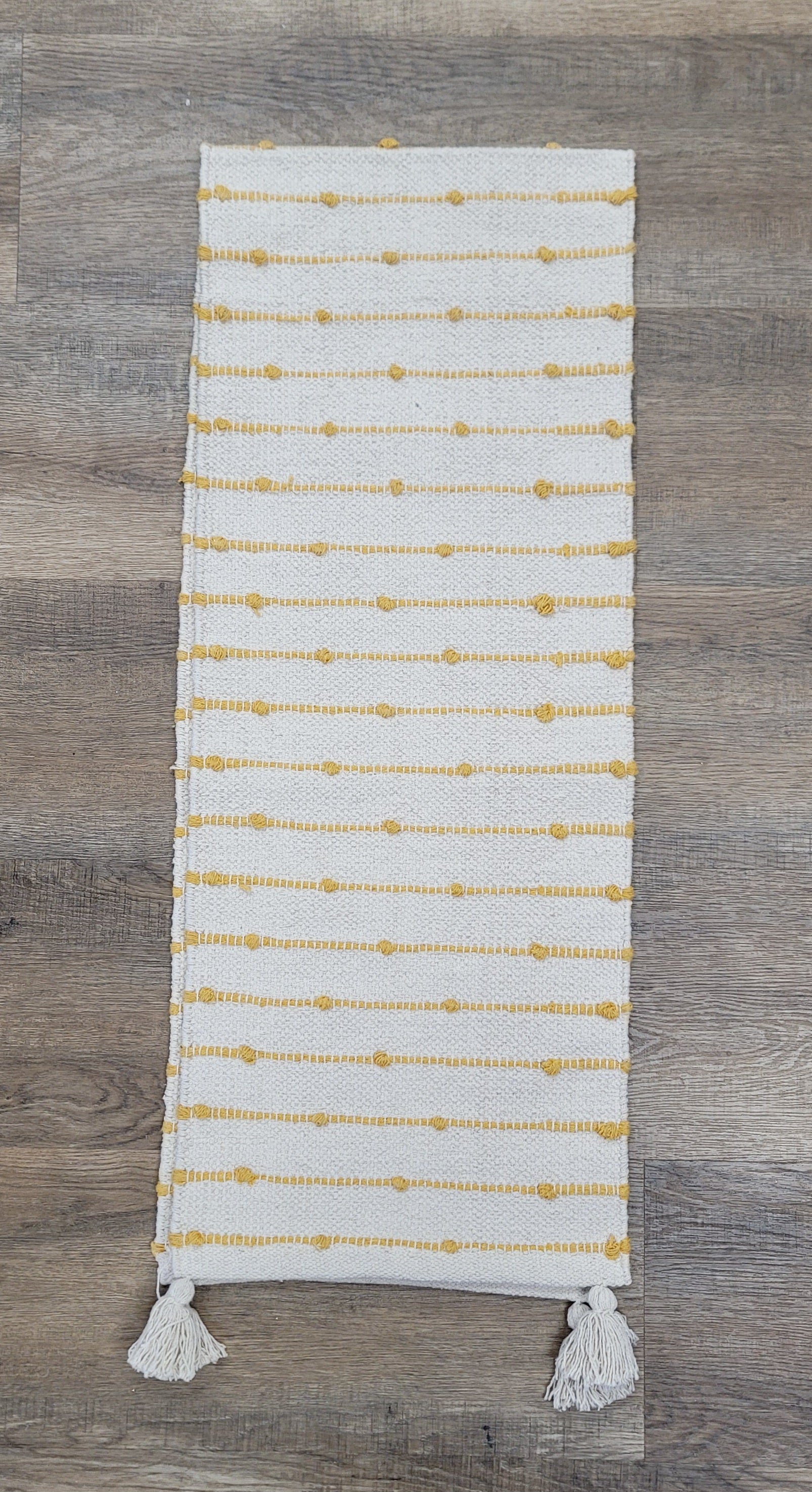 Beautiful tan and mustard table runner. Great for spring and summer. Measuring at 72"x 14".